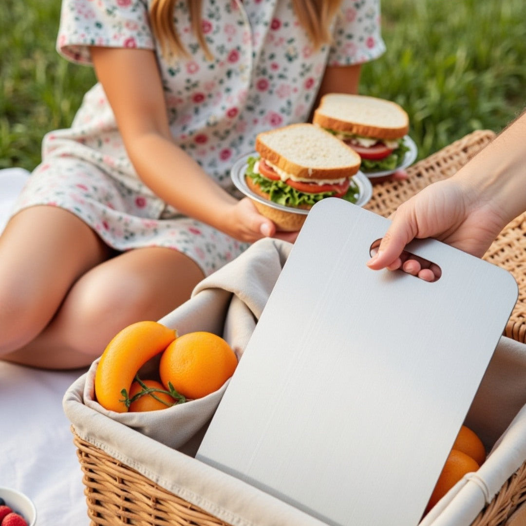 Yes. The Titanium Cutting Board eliminates cross-contamination risk. Slice raw meat, rinse clean, then chop veggies immediately—no special cleaning, no worries.