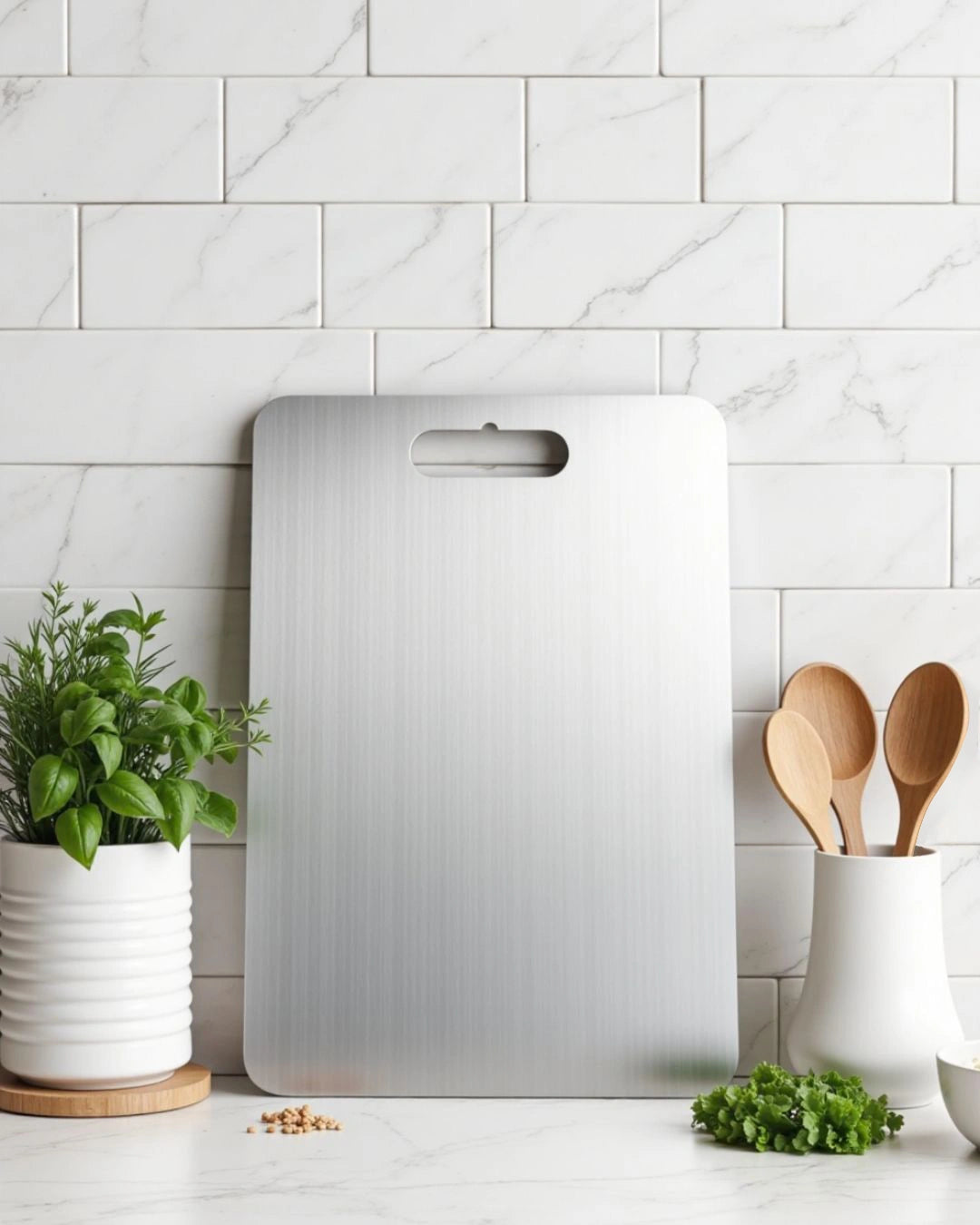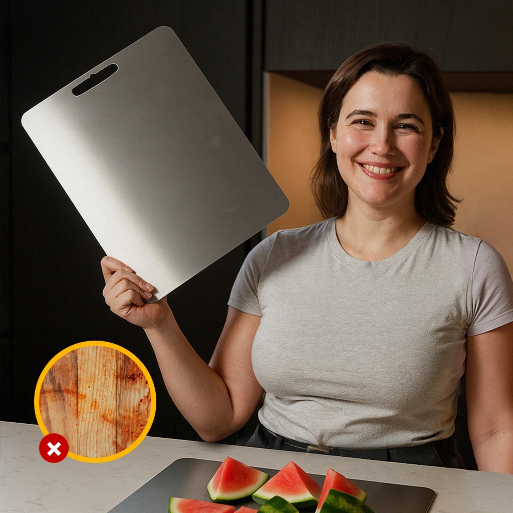 Titanium’s biocompatibility is why it’s used for surgical implants. It never leaches toxins, won’t react with food, and won’t degrade over time. Unlike plastic boards that shed microplastics or wood boards that absorb bacteria and odors, our board stays 100% sterile—no contaminants ever touch your meals