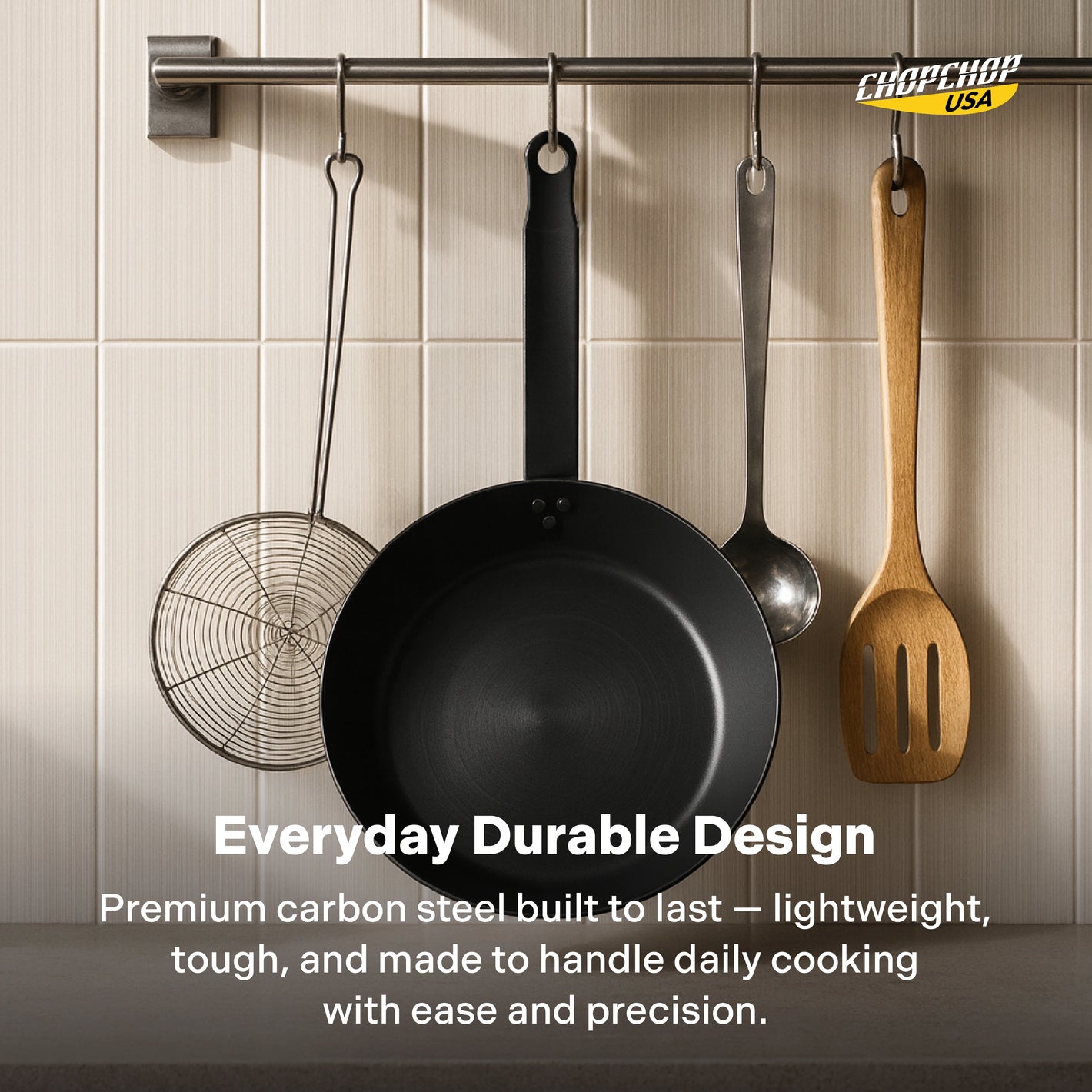 The ChopChop USA Carbon Steel Pan delivers professional-grade heat control, natural non-stick performance, and lightweight durability—crafted for chefs who crave precision and power in every dish.