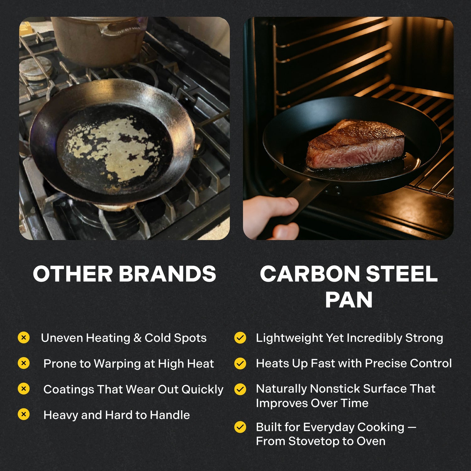 🥇 Material Comparison: Why the Carbon Steel Pan Excels