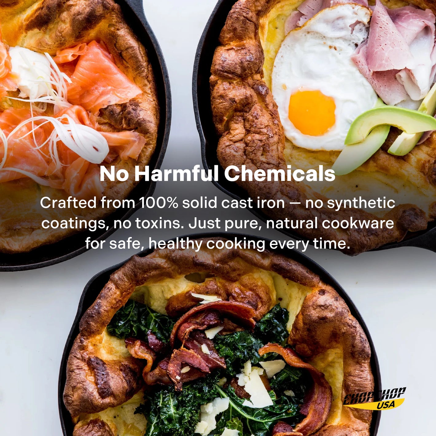 The ChopChop USA Cast Iron Skillet offers a naturally safe and enduring alternative. Crafted from 100% pure cast iron with no coatings, chemicals, or synthetic layers, it delivers genuine durability, consistent heat retention, and rich, authentic flavor. Built to last for generations, it’s the cookware you can trust for healthy, worry-free cooking—today and every day.