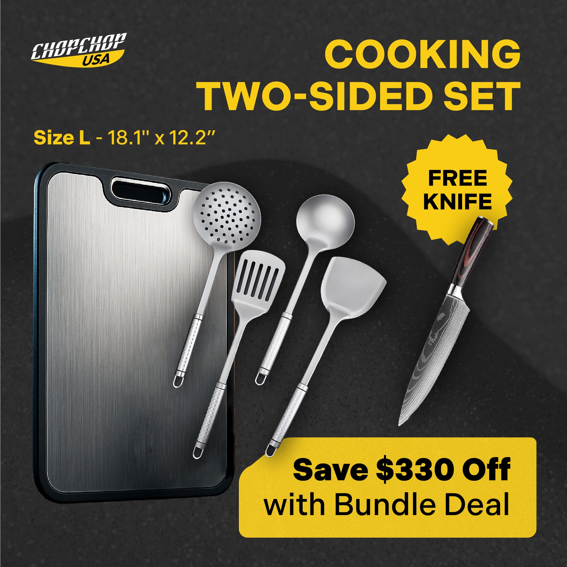 Yes, the ChopChop™ USA Double-Sided Titanium Cutting Board is available in the following sizes: