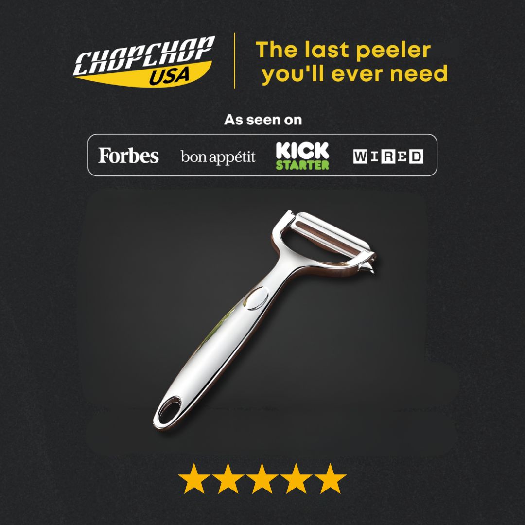 The ChopChop USA Stainless Steel Peeler makes peeling fruits and vegetables fast, easy, and precise.