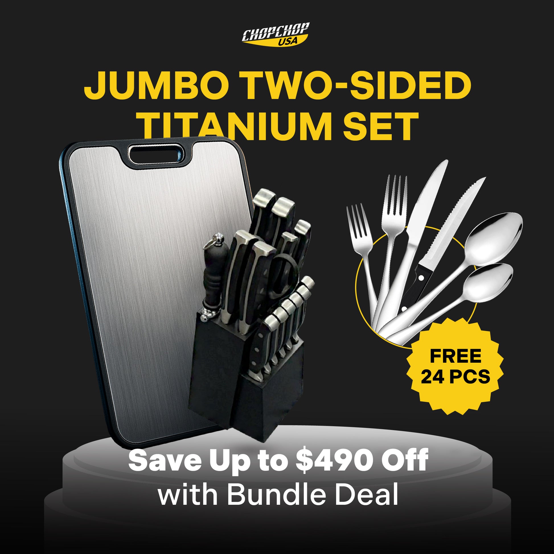 Revolutionize your kitchen routine with the ChopChop USA Double-Sided Titanium Cutting Board — the perfect fusion of innovation and practicality. Featuring pure titanium on one side and a premium wheat-fiber composite on the other, this board offers dual-function flexibility for any meal prep task.