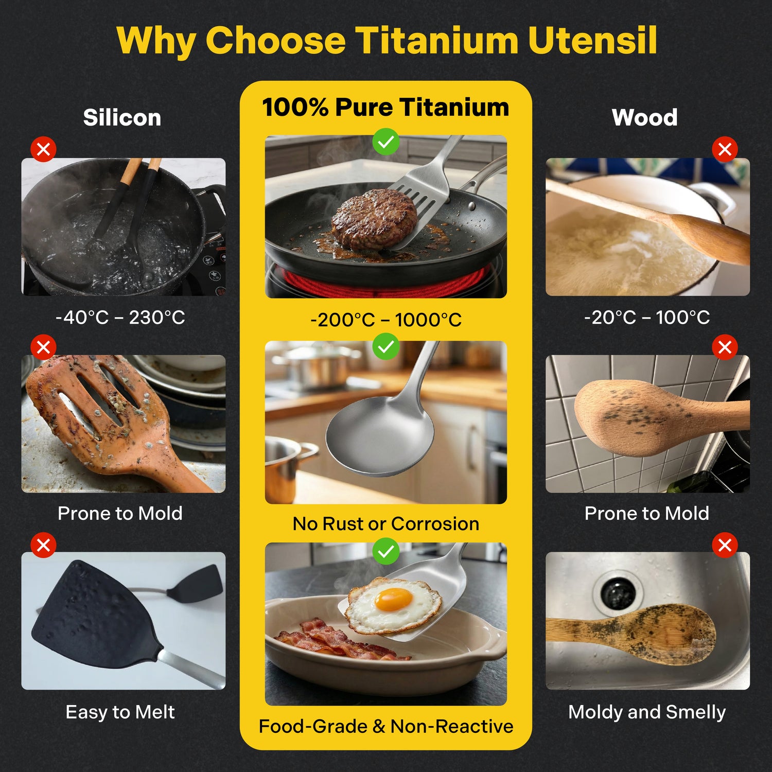 Choosing 100% pure titanium utensils means fewer worries about microplastics, hidden mold, or questionable coatings—and more confidence in every meal you cook.