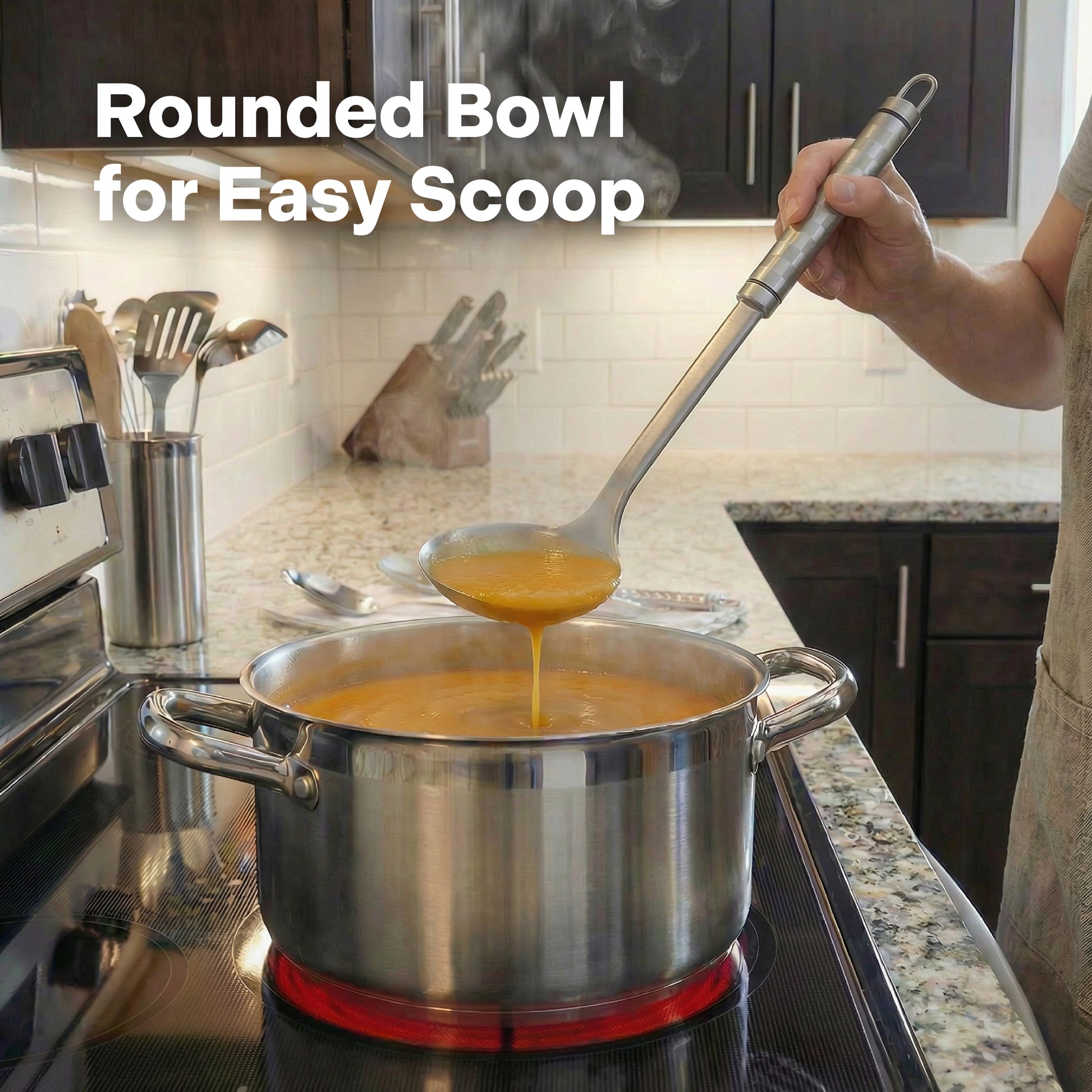 Ladle / Dipper: For soups, stews, sauces, and curries, with smooth pouring and comfortable handling.