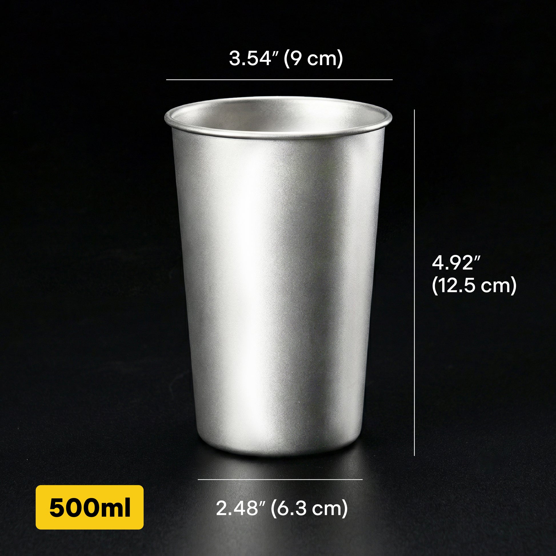 Our Titanium Beer Cup comes in one size: 500 ml—a generous, pint-style capacity that’s ideal for full pours with the perfect amount of room for foam, ice, or mixed drinks.