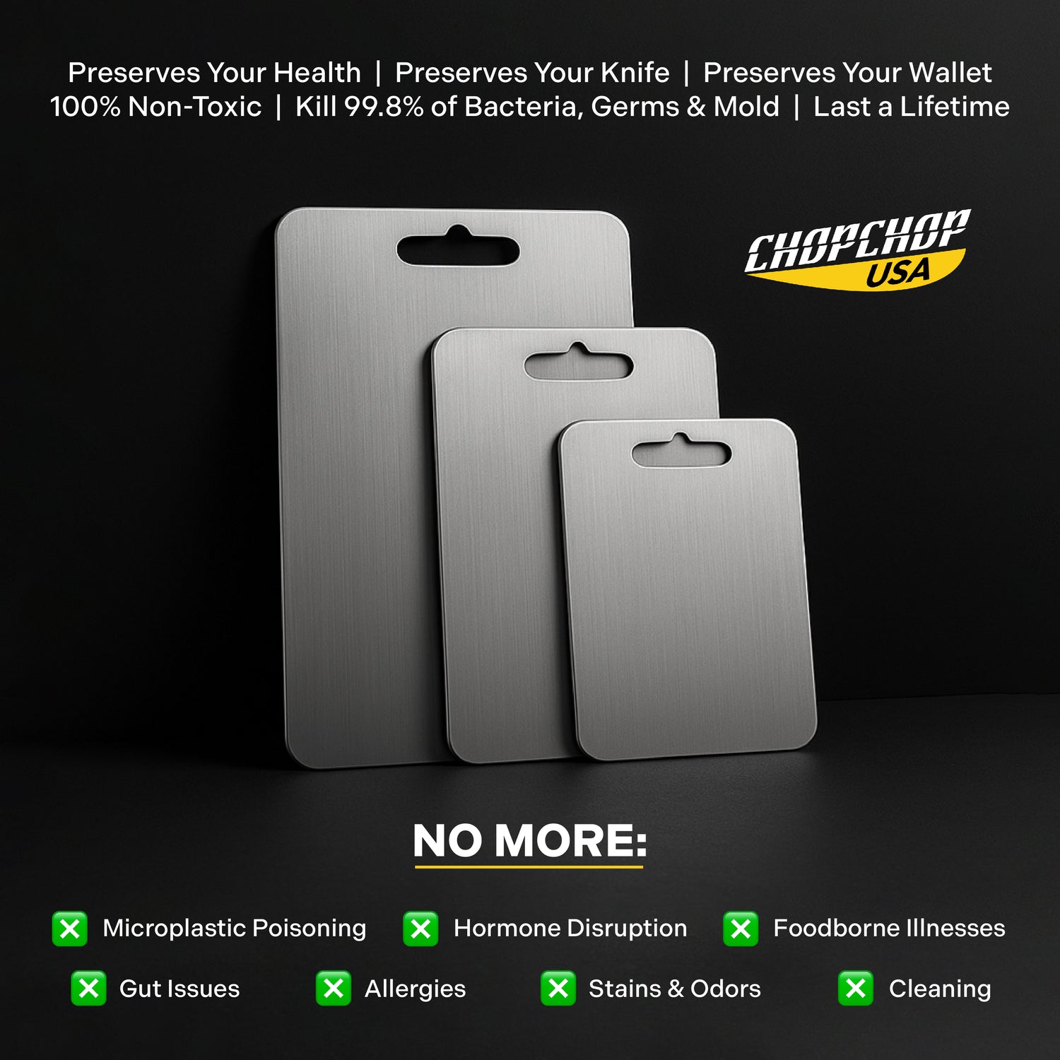 The Best ChopChop USA Titanium Cutting Board comes in three thoughtfully designed sizes to suit every kitchen need: