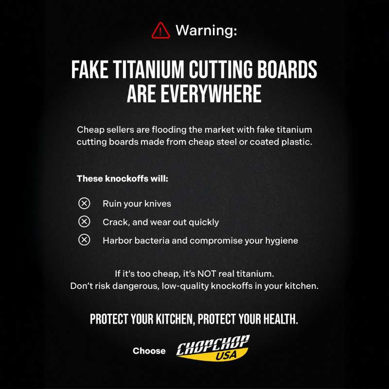 Because titanium boards last a lifetime—there’s no repeat-purchase profit. They’d rather sell you plastic or wood that wears out fast. At ChopChop™ USA, we believe in one investment for life: superior performance, big savings, and total peace of mind.